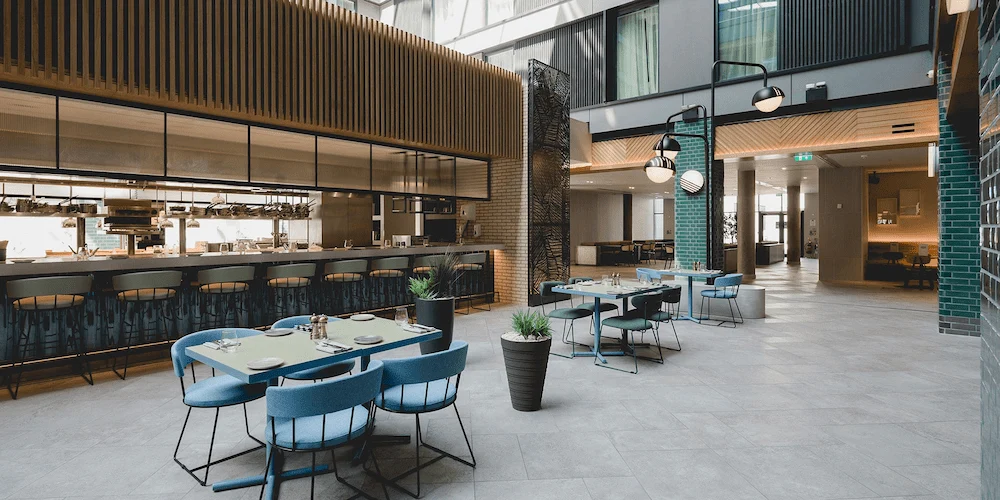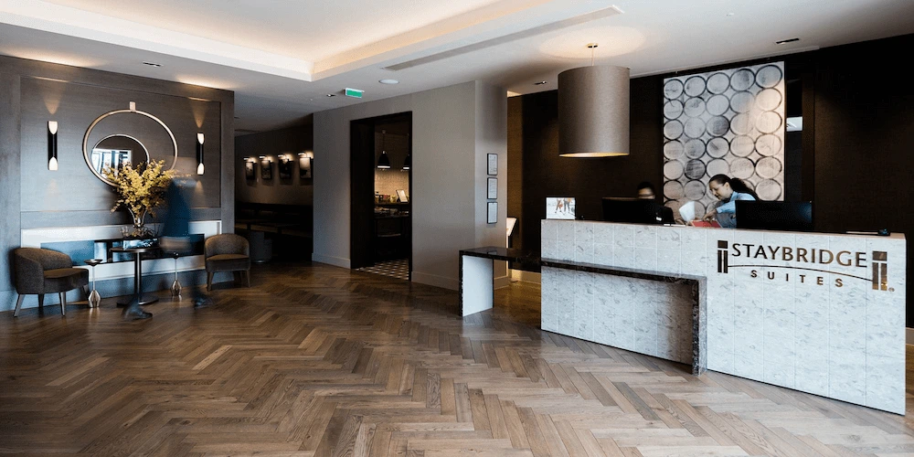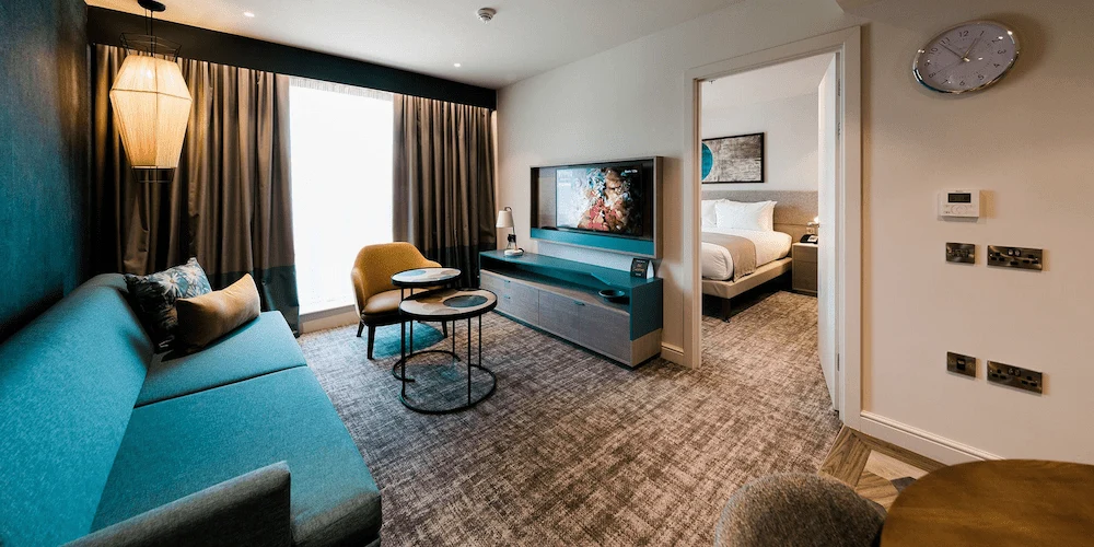 This all-suite airport hotel is located 1 mile from Heathrow Airport. The hotel property has 623 suites, with kitchens and living/dining areas and large front & back of house spaces.